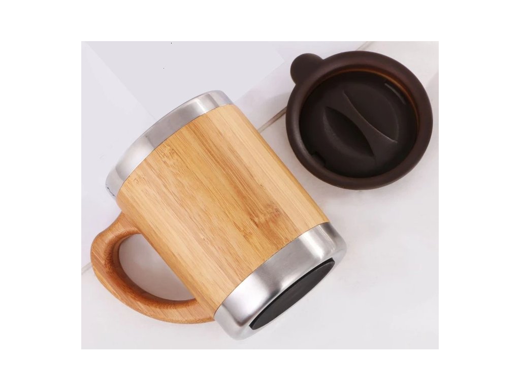 Stylový termo hrnek z bambusu a nerezové oceli.