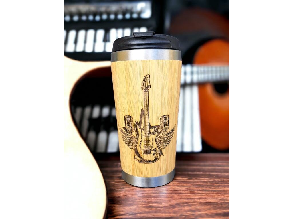 Stylový termo hrnek z bambusu a nerezové oceli.