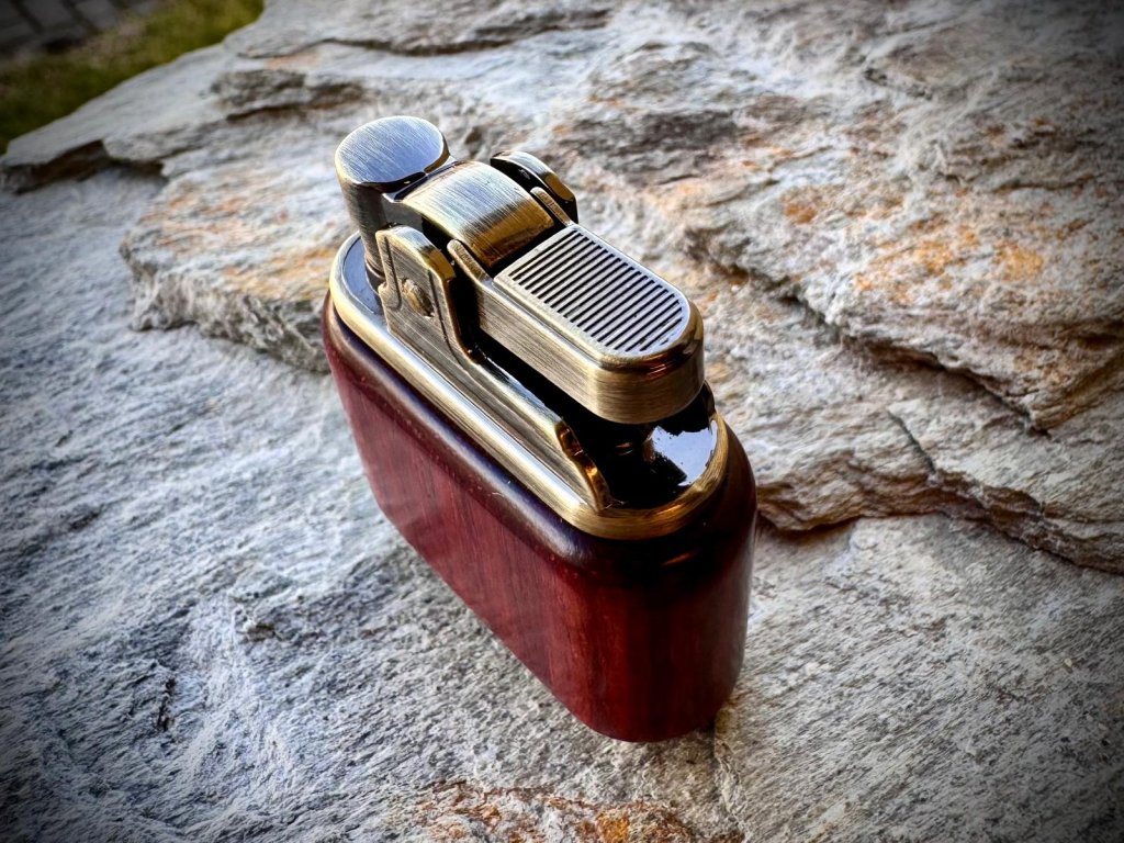 Masivní benzinový zapalovač z mosazi a dřeva